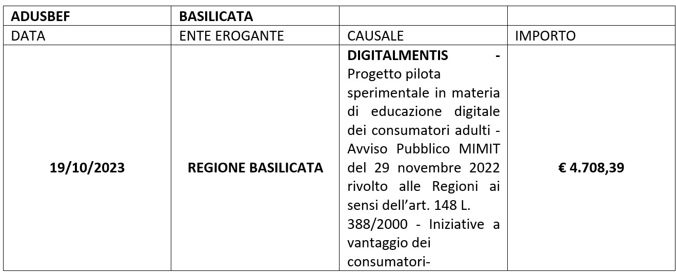 RENDICONTO Adusbef Basilicata 2023 “Digitalmentis”